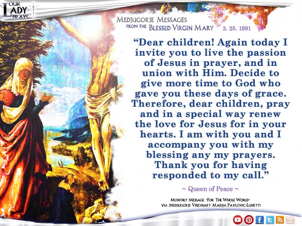Medjugorje Message March 25 2024. In a special way, little. March 25, 2024 dear children! N this time of grace, pray with me for the good to win in you and around you. In a special way, little. Our Lady Of Medjugorje Messages. In this time of grace, pray with me for the good to…